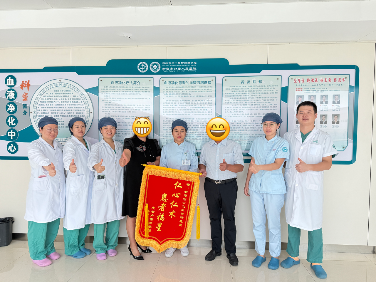 近日,新郑市公立人民医院血液净化中心里,卢先生紧紧握着杨真真护士长的手,将一面印着“患者福星 仁心仁术”的锦旗递到医护人员手中,话语里满是感激。