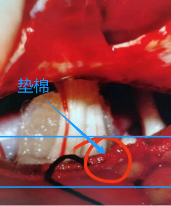 显微镜下,面神经近侧头端被动脉压迫,分离血管后,用特殊垫片隔离,达到减压的目的,精准解除血管对面神经的压迫。