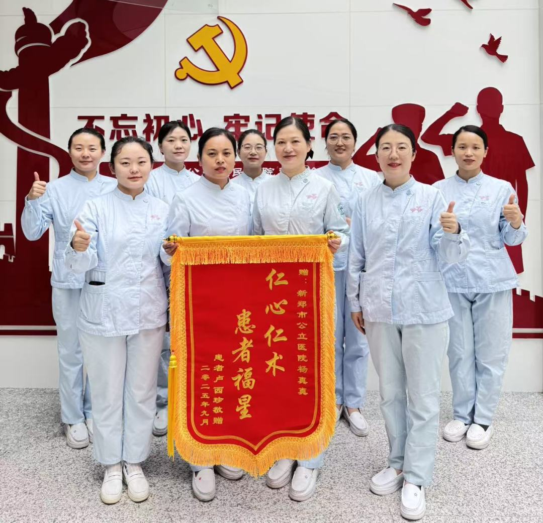 近日,新郑市公立人民医院血液净化中心里,卢先生紧紧握着杨真真护士长的手,将一面印着“患者福星 仁心仁术”的锦旗递到医护人员手中,话语里满是感激。